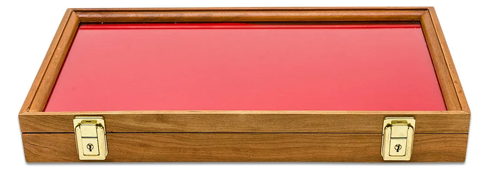 This handcrafted display case will make an ideal presentation box for your personal collectibles; pocket knives, arrowheads, service medals and medallions, pins, jewelry, and family heirlooms. These display cases can be showcased anywhere in your home or office to added that special touch. It has a material covered foam insert and will hold items from paper thin to 1-1/8″ thick. What a great gift idea for someone just starting a collection.