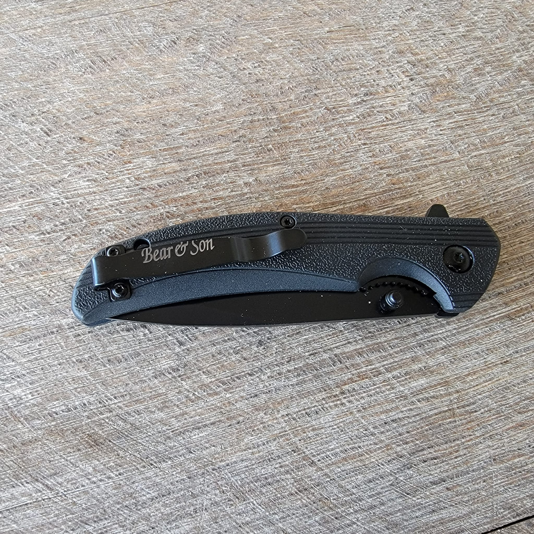 / Bear Black Zytel Sideliner Flipper Black Blade Partial Serrated