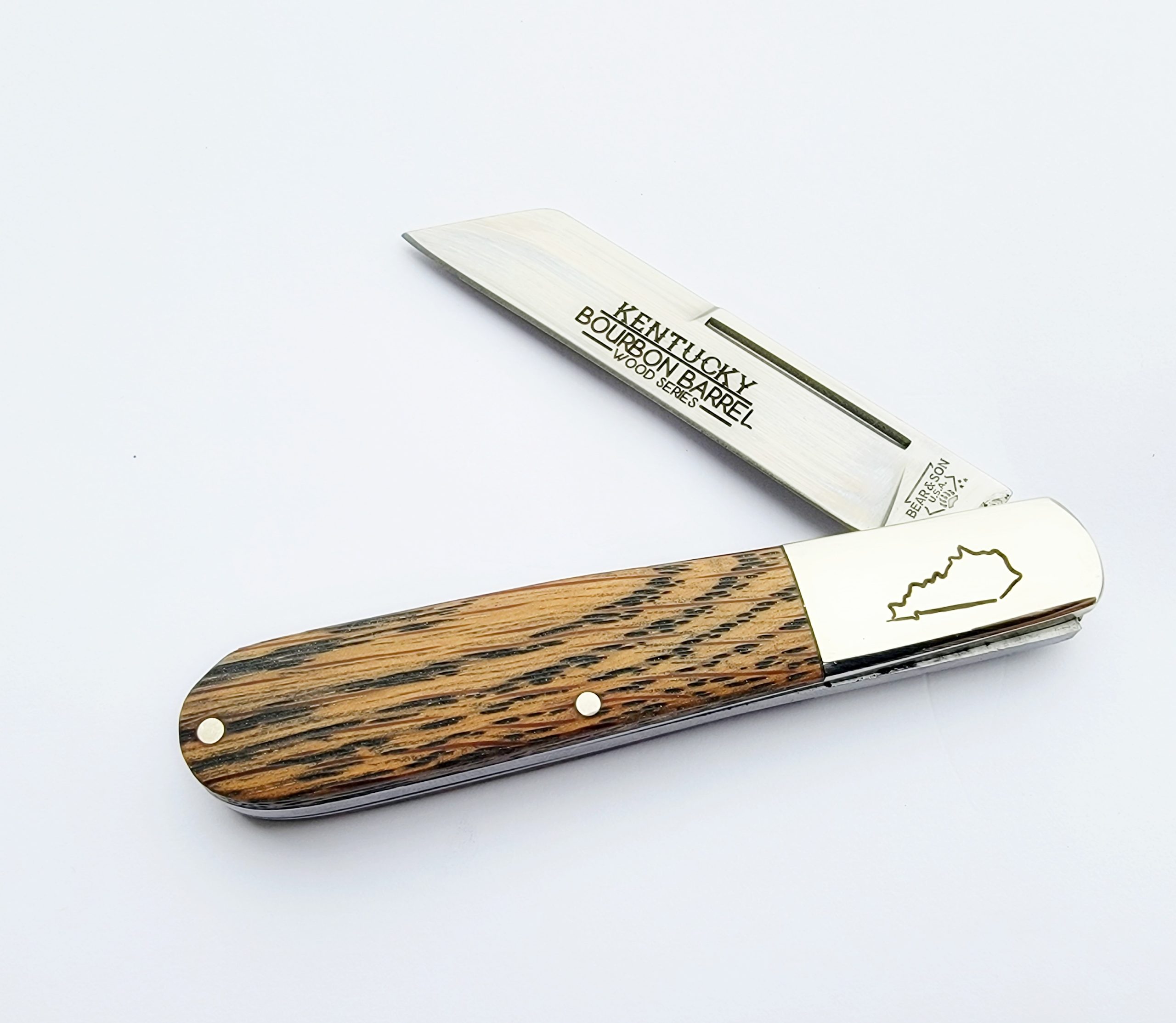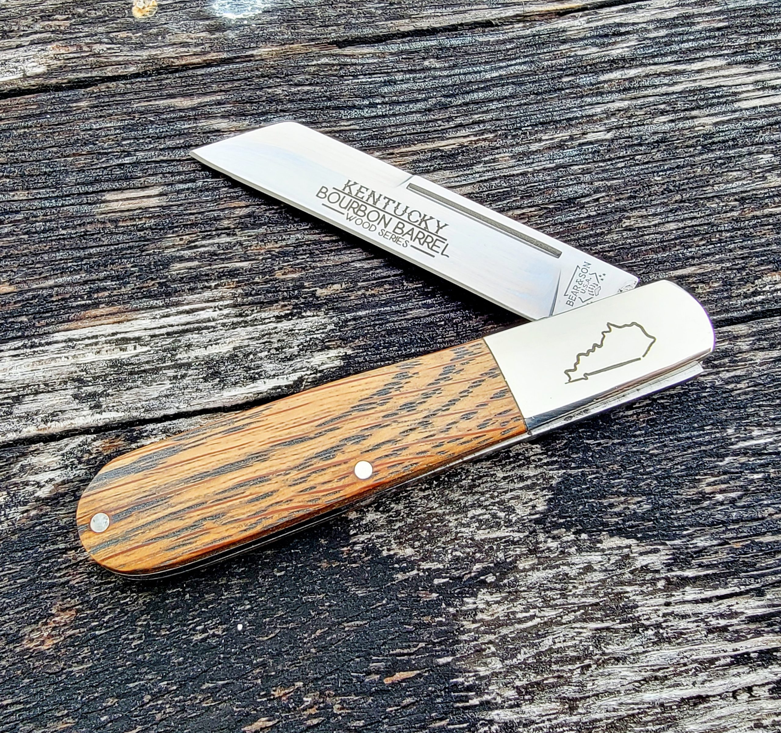 This quality run of knives is made by Bear & Son Cutlery. Red Hill Cutlery is proud to be partnering with Bear to produce this exclusive run of Kentucky Bourbon Barrel wood knives in America.