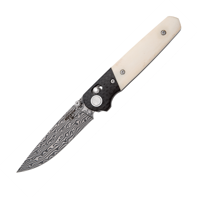 Bear Natural Bone and Carbon Fiber Damascus Lawman