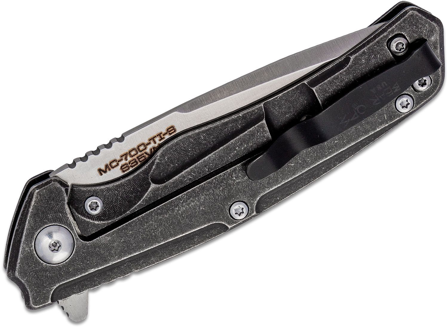 An upgrade in quality from the previous iterations, the Rancor VII is a more elegant take on the series. Slightly smaller than its compatriots, it fits unobtrusively into a pocket, while still being comfortable to hold and use. The taper-ground blade is made from CPM-S35VN stainless steel which sports a good combination of corrosion resistance, edge retention, and hardness. It deploys easily thanks to the integrated flipper tab and locks up firmly with a sturdy frame lock. The handle comes in two material choices; either black stonewashed titanium or attractive carbon fiber. Both of these materials look and feel great to use.
