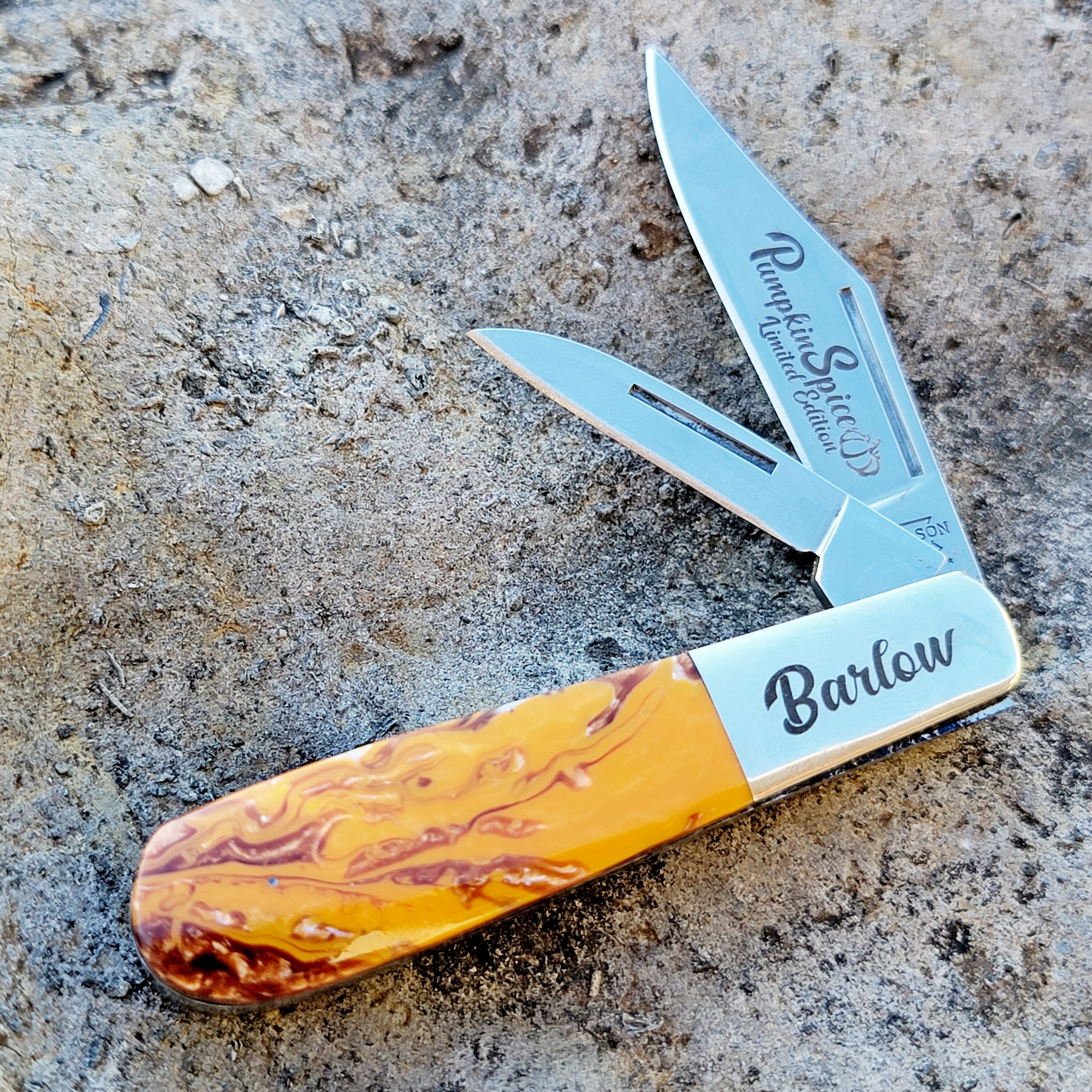 Tis the Season for everything PUMPKIN SPICE! RHC & Bear Son Cutlery collaborated to create this exclusive color of the ever popular micro-pearl handle. Each one comes packaged in RHC Box. Limited Quantity Made
