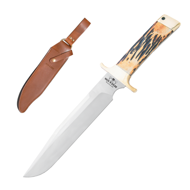 15 in. Freedom Fighting Bowie StagBone with Leather Sheath