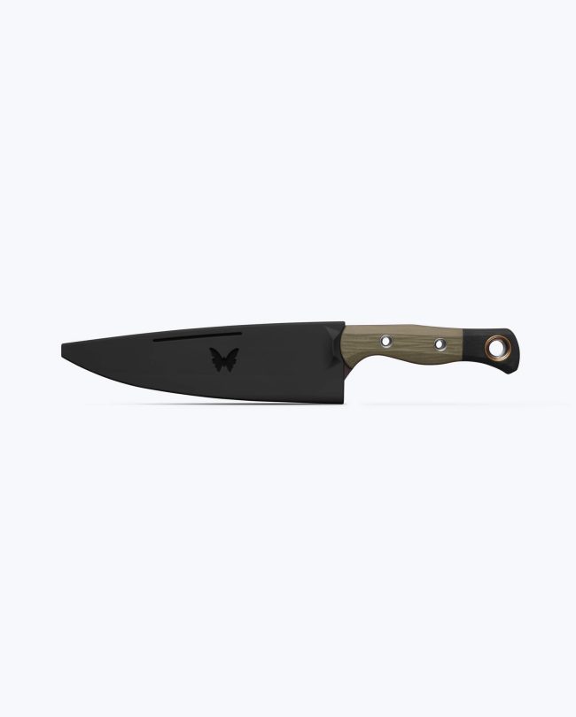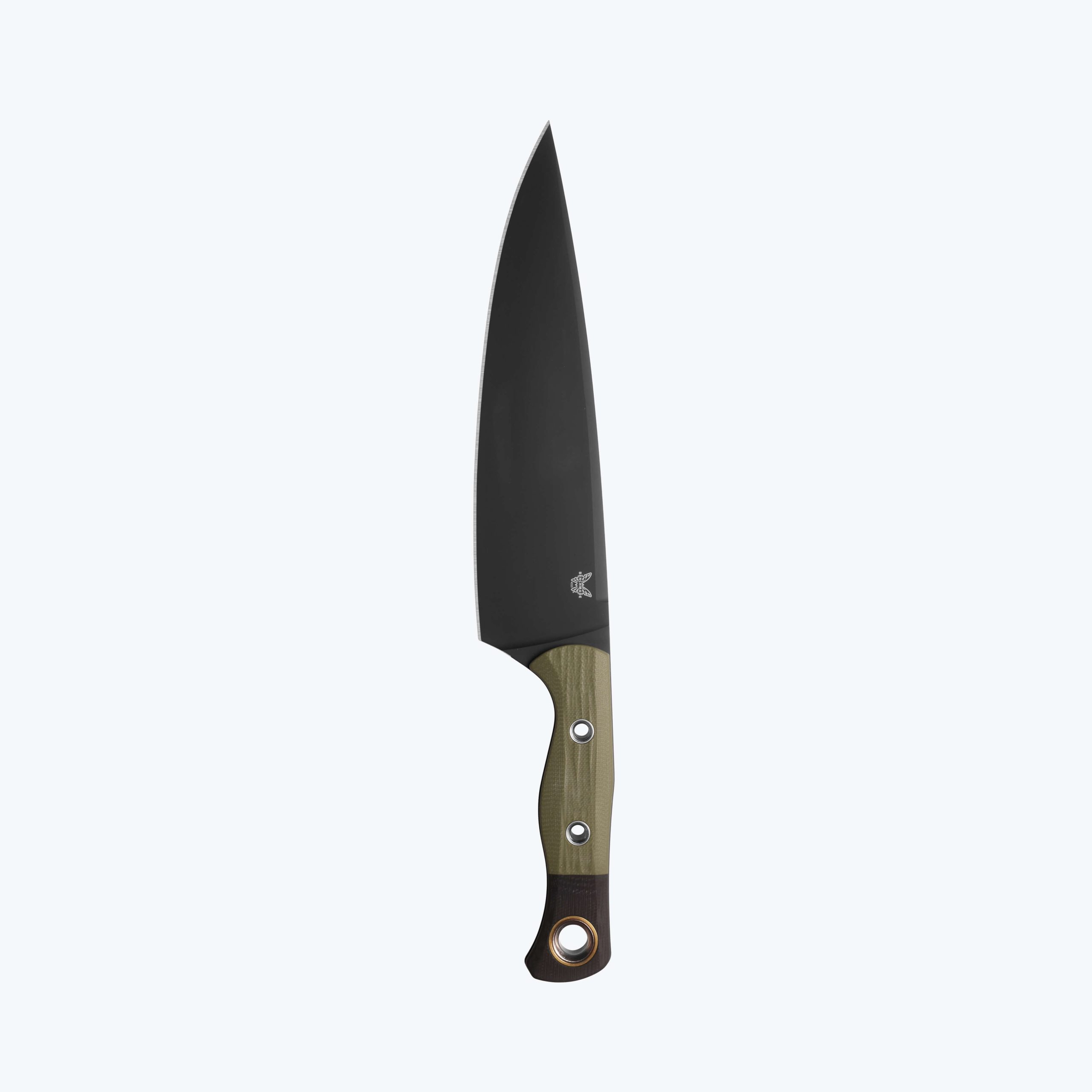 For the first time ever, Benchmade’s full-size chef knife steps out on its own—now available as a stand-alone blade. Designed to slice, chop, dice, and crush with confidence, it features a CPM-154 SelectEdge® blade with a new false edge grind, a durable DLC finish, and an OD Green G10 handle with black bolster. An all-new folded and riveted Boltaron® blade guard adds protection for carry and storage.