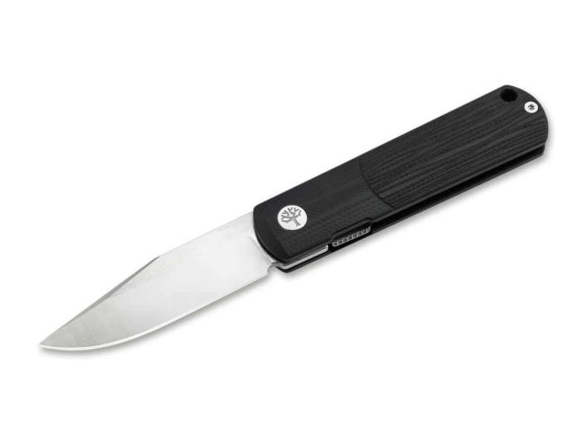 LoW-caRB for BRLW! Unimpressed by over 150 years of Boker Barlow history, the lightweight pocket-knife carries the legacy of the popular model series into the future with modern zeitgeist. Only the best materials, finest craftsmanship and 1869% passion flow into the elegant BRLW G10. The visually contrasting, precision-milled handle made of timeless black G10 is a defining feature of the style, lovingly echoing the characteristic, extra-long bolster at the front and the wood grain at the back of the handle. A discreetly integrated linerlock locks the ball-bearing clip-point blade made of powder metallurgical CPM MagnaCut (61-62 HRC) with a self-reliant ricasso. This blade steel is characterized in particular by its symbiosis of high edge-retention, hardness, corrosion-resistance and toughness. The discreet flipper, which disappears completely when open, and the flat, milled titanium clip (tip-up/r), which allows an inconspicuous deep-carry mode, contribute to the cultivated appearance. The lanyard hole for attaching lanyards to the end of the handle provides additional carrying options. The Boker BRLW G10 is delivered in a high-quality felt sheath. Handmade in the Boker Manufactory in Solingen.
