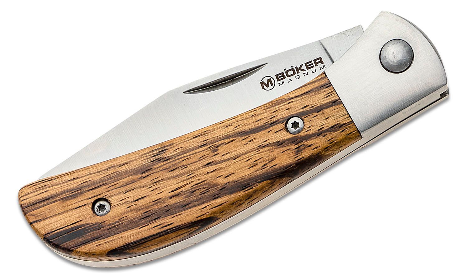 As a safe children’s knife, the Magnum Kids Folder has a rounded tip and thus completes the equipment of every young scout and adventurer. Explicitly designed for children’s hands, the slipjoint pocket knife is significantly more compact than ordinary knives and can therefore be easily handled by even the smallest ones. The satin-finished clip-point blade is made of 440B stainless steel, opens with both hands with a nail nick, and does not lock. The sturdy construction is supplied with ergonomically shaped handle scales made of zebra wood, which immediately catches the eye with its elongated grain.