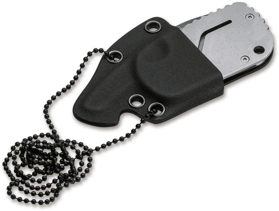 The Subcom and Boker Plus share a close historic connection since the Subcom Folder by Chad Los Banos was the first model ever to be made under the Boker Plus brand. With the Subcom Friction, Boker is transposing the successful Los Banos concept into a compact Friction Folder with a blade that can be opened and kept open by means of an elongated pin. An easy-lock detent ball offers noticeable resistance in the open, closed and 90° position of the blade, without locking it. The stainless steel handle with G10 scales does not have a clip since a Friction Folder with a clip shouldn’t be carried in a pocket. Instead, the knife comes with a compact Kydex sheath. It can be worn as a neck knife on a ball chain or simply carried in the pocket. The AUS-8 drop point blade gives the Subcom Friction an elegant silhouette. The handle and blade have a robust stonewash finish.