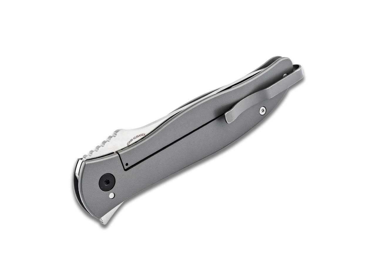 Confidentially discreet in appearance, uncompromisingly direct in performance. Knifemaker John Kubasek from Massachusetts has created an exclusive everyday companion that turns every diversion into a shortcut with the Boker Plus The Escort. The ball-bearing, satin-finished straight-back blade made of Nitro-V is always ready for action, asserting its sovereign right of enforcement by activating the flipper. The blade is constantly protected by the reliable framelock, while pronounced jimpings on the thumb ramp and the gently curved silhouette of the grey stainless-steel handle ensure an exceptional feel and a high level of safety at work. The tip-up clip allows the knife to be carried in deep-carrying mode and is visually only surpassed by the black pivot screw in the style of bodyguard sunglasses. The knife is supplied with a high quality nylon case for storage. The Boker Plus Escort – always ready when it matters most.