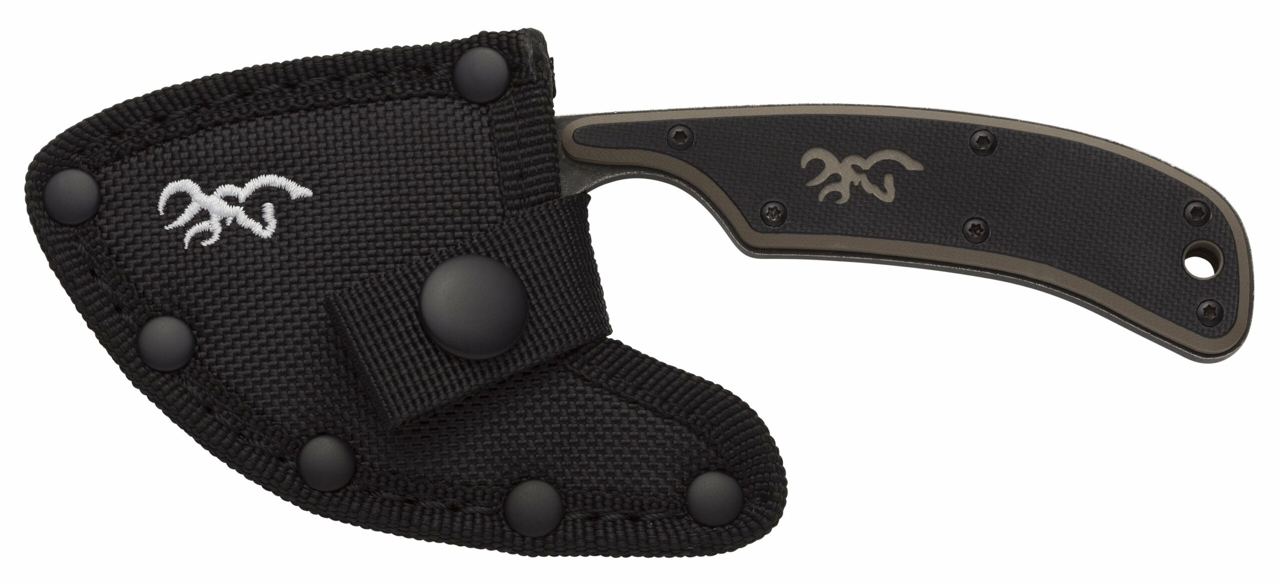 The Browning Cutoff Series is a line of fixed blade knives that focus on safety and ease of use. They all have a textured G10 handle that works with the blade to provide a large finger choil that actually lets the blade extend down to cover the knuckles, keeping your hand safe during use. The handles are shaped perfectly to match your palm and give great purchase when doing small tasks. The Cutoff Skinner has a wide drop point design that is great for a variety of tasks but excels at skinning small game. All Cutoff Series knives come with a nylon belt sheath that makes sure they are always close at hand.