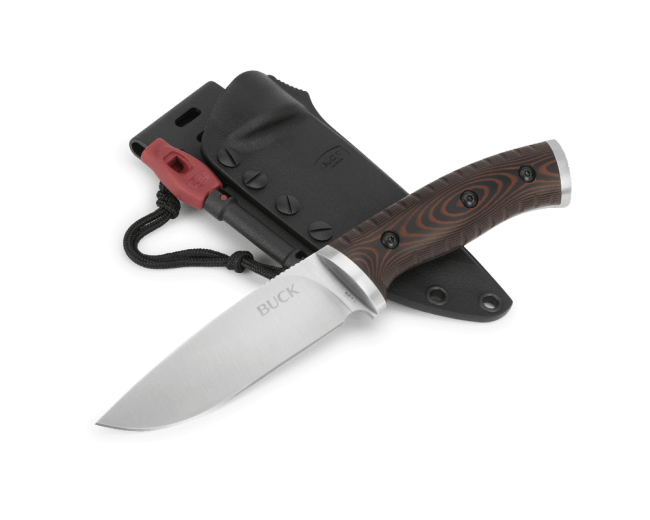 This multifunctional survival knife has added features to enhance survival when it matters most. In addition to the 420HC steel blade, the Selkirk features a micarta handle with steel bolsters (rear bolster can be used as an improvised hammer) and a heavy-duty belt sheath that can be configured for horizontal or vertical carry. Overall length: 9 1/2″ (24.1 cm). Included with the sheath is a fire starter/whistle tool. Imported.