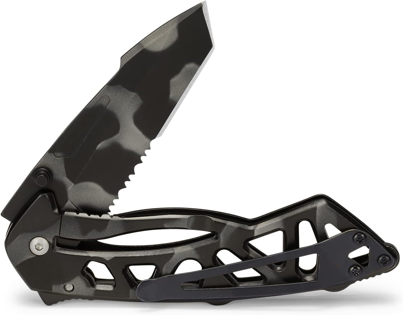 The Bones® is a modern and high-tech design, with special attention to ergonomics, including a curved handle with grip points. These grip points are built-in at three critical pressure points to ensure a secure grasp. To keep this knife at its lightest, the skeletal framework minimizes material weight, while maintaining strength. The blade is partially serrated for added performance. The knife features a one-hand ambidextrous open blade deployment with a thumb stud. Length 4 5/8″ closed. Imported.