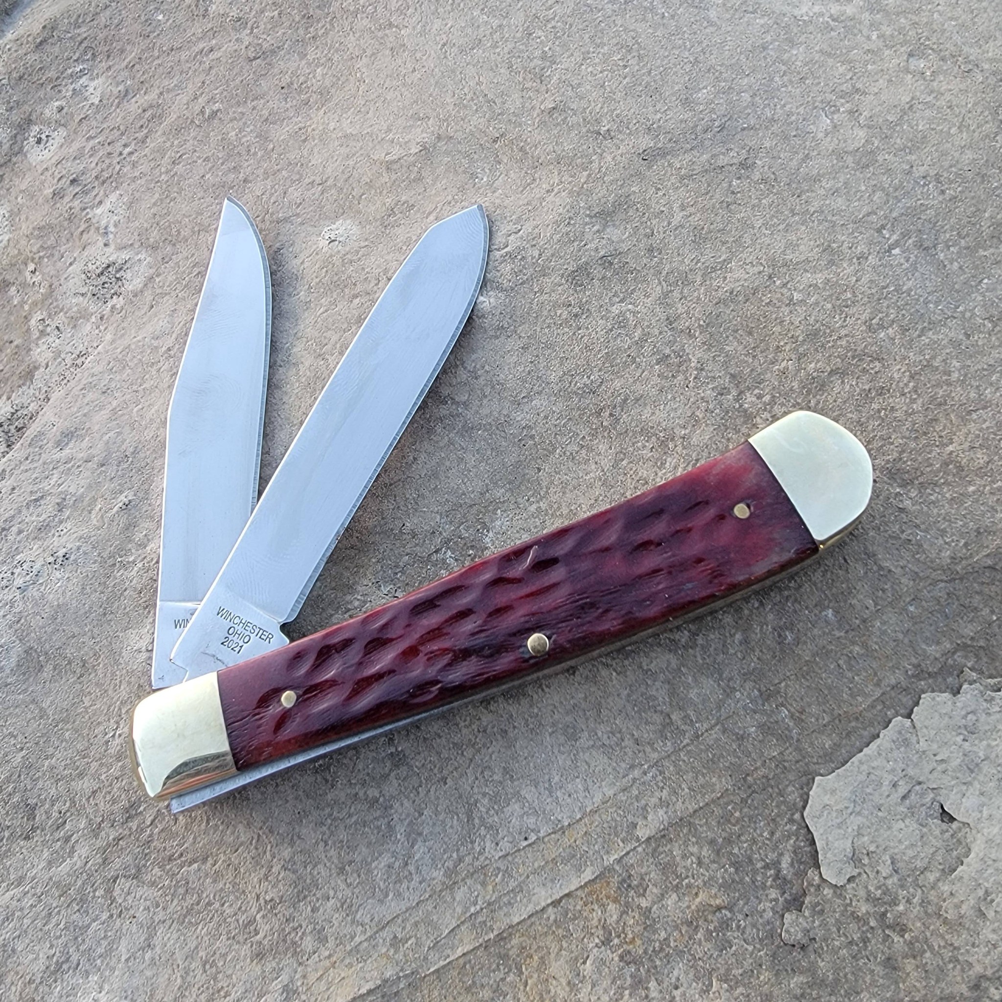 Cooper Cutlery Battle Axe Brand Burgundy Red Bone Jigged Trapper