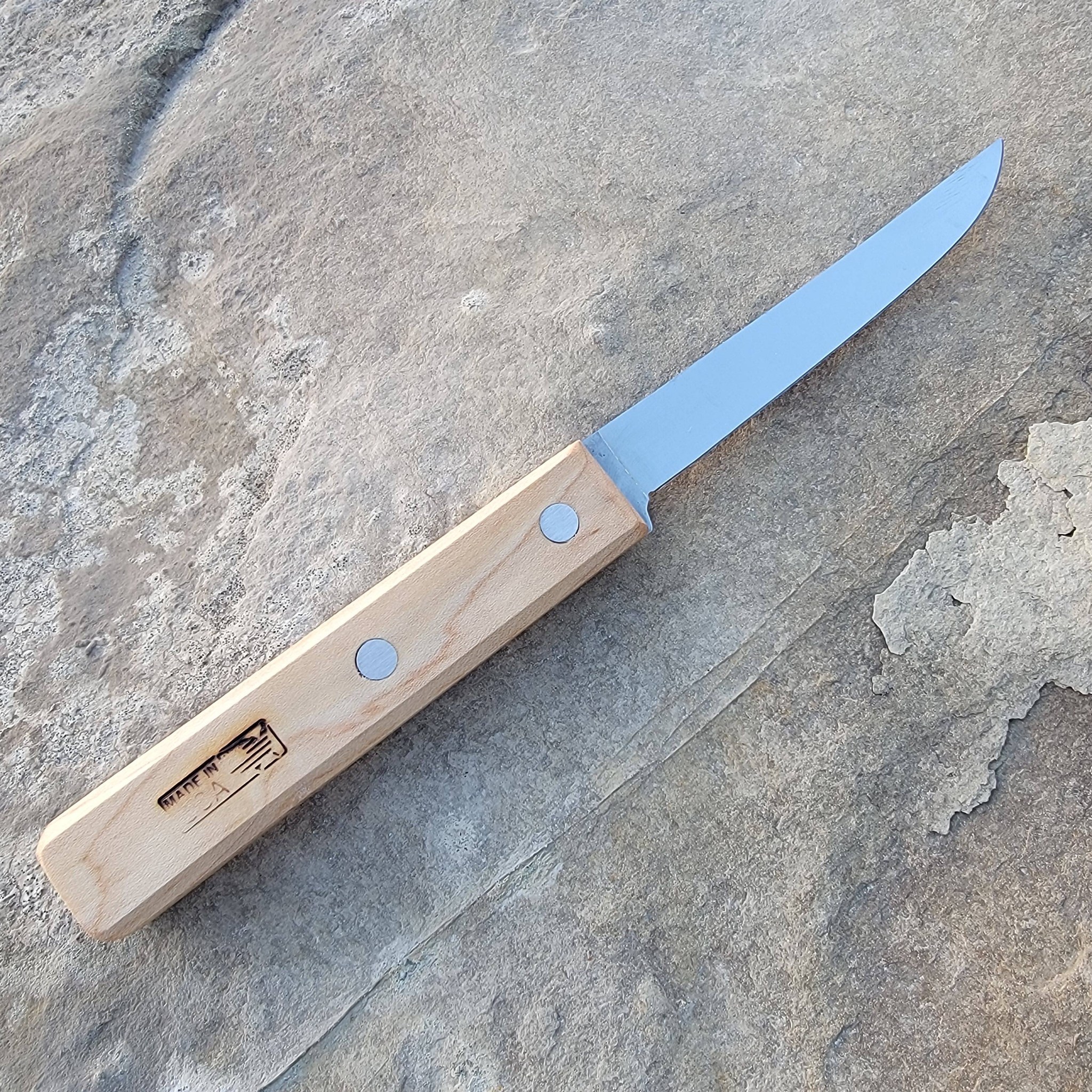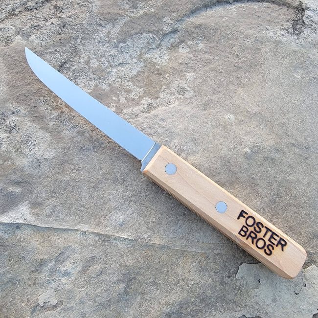 ****Foster Brothers was founded in 1878 in New York by Frank and Allie Foster. They made high quality butcher knives and cleavers out of 1095 carbon steel until 1950. These knives are made out of 100 year old vintage 1095 Carbon Steel. These blades were in the attic of the Queen Factory when Cooper Cutlery purchased the contents. Using Peter’s Heat Treating to heat treat them to 58-60 Rockwell with their frozen forge method. The handles are hard maple hand pinned with nickel silver pins. Limited quantities available. Blades will show some age