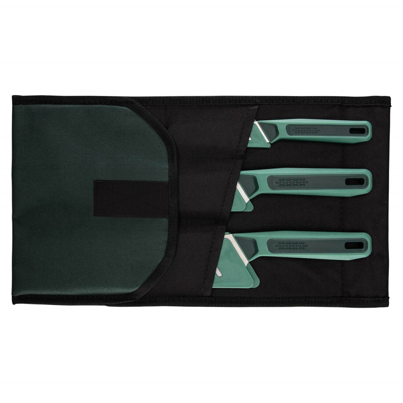 Grab the ComplEAT Knife Set for your next camping trip and leave the kitchen knives at home. This camping cutlery set includes three full-size essential knives designed for any outdoor kitchen – a 3.25” paring knife, a 6” serrated utility knife, and an 8” chef knife. Designed with German stainless steel for optimal edge retention and overmolded handles provide comfort in hand. Stow everything safely in the sheaths or carrying case between meals.