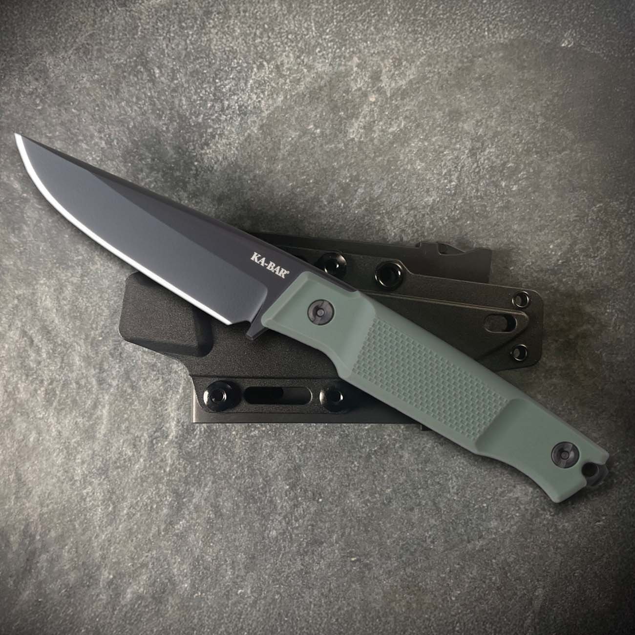 You have reached the Apex! The Apex was designed by Petr Janda, a longtime KA-BAR designer previously known for his FIN line of knives. Janda designed the Apex to be a slim, robust fixed blade capable of working in tight corners and confined space. The Apex is made with D2 steel and comes with a hard plastic sheath.
