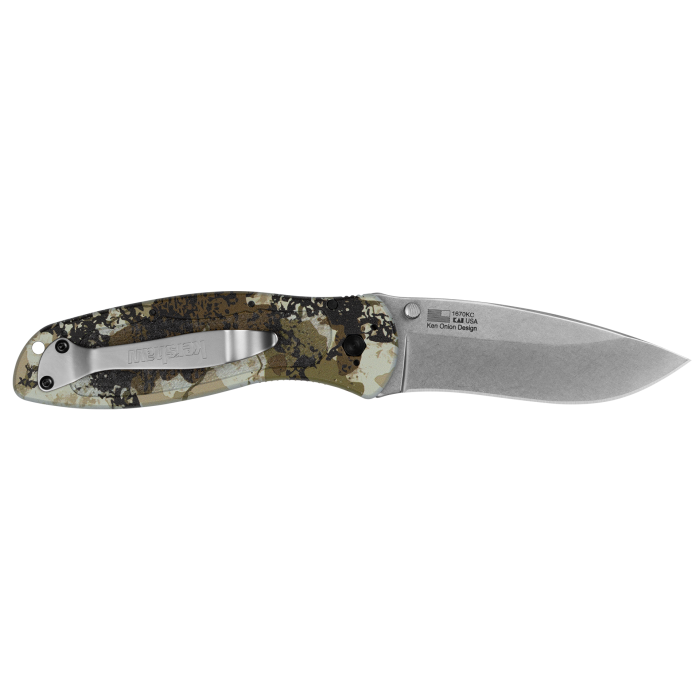 - Made in USA folder; collaboration between Kershaw and King’s Camo™