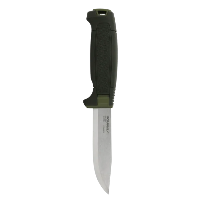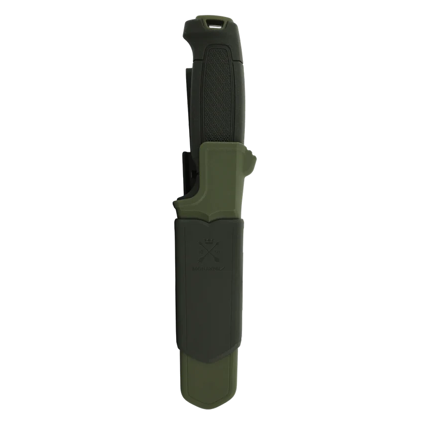 The 109 mm long blade is 3.2 mm thick and made from cryogenically treated Swedish stainless steel (12C27) with a classic Scandi grind and a hardness of 58 HRC. This combination provides a strong and durable edge that holds its sharpness for a long time and is easy to maintain in the field.