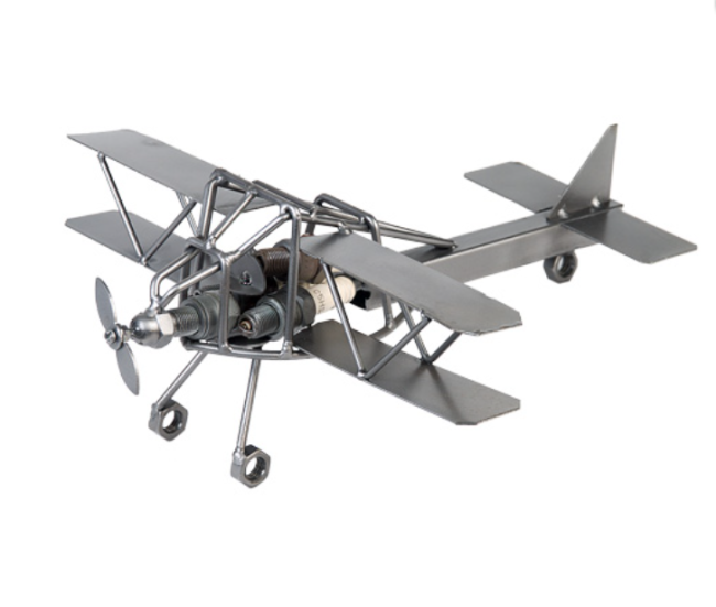 Made from nuts and bolts, link chain and other metal pieces. Since this item is handcrafted, there will be slight variations between each one.