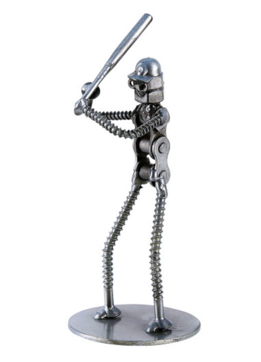 Made from nuts and bolts, link chain and other metal pieces. Since this item is handcrafted, there will be slight variations between each one.
