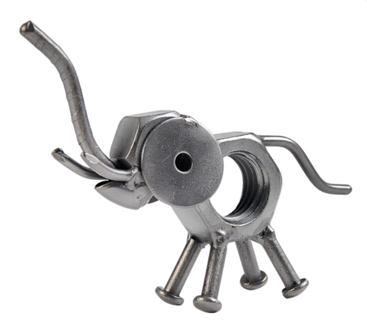 Made from nuts and bolts, link chain and other metal pieces. Since this item is handcrafted, there will be slight variations between each one.