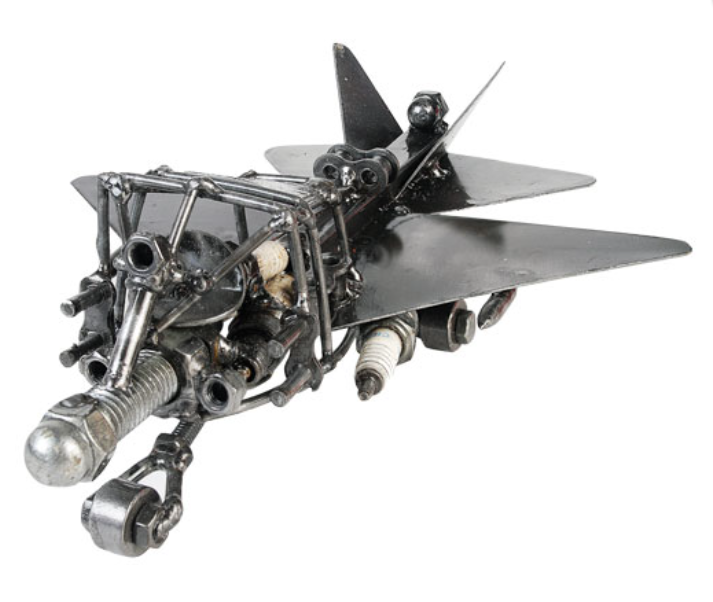Made from nuts and bolts, link chain and other metal pieces. Since this item is handcrafted, there will be slight variations between each one.