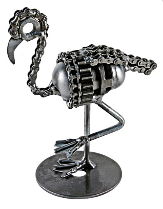 Made from nuts and bolts, link chain and other metal pieces. Since this item is handcrafted, there will be slight variations between each one.