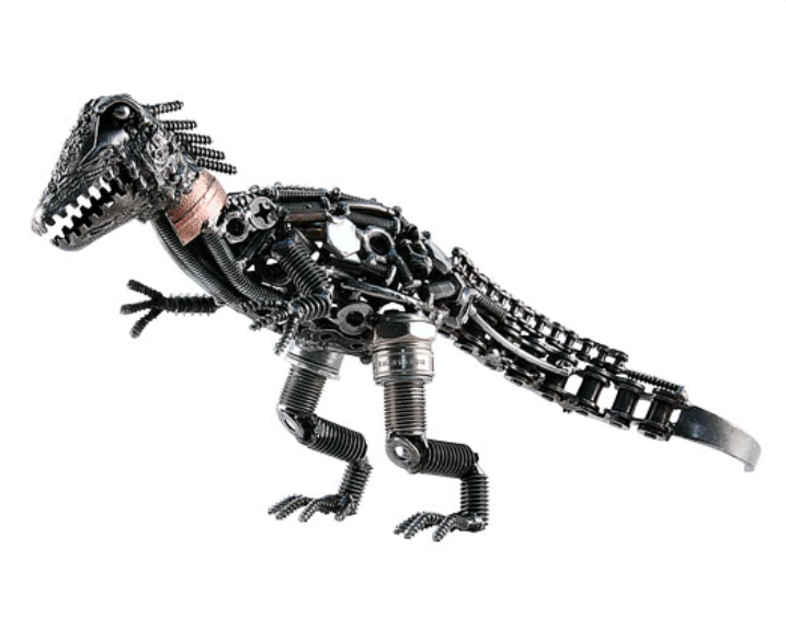 Made from nuts and bolts, link chain and other metal pieces. Since this item is handcrafted, there will be slight variations between each one.
