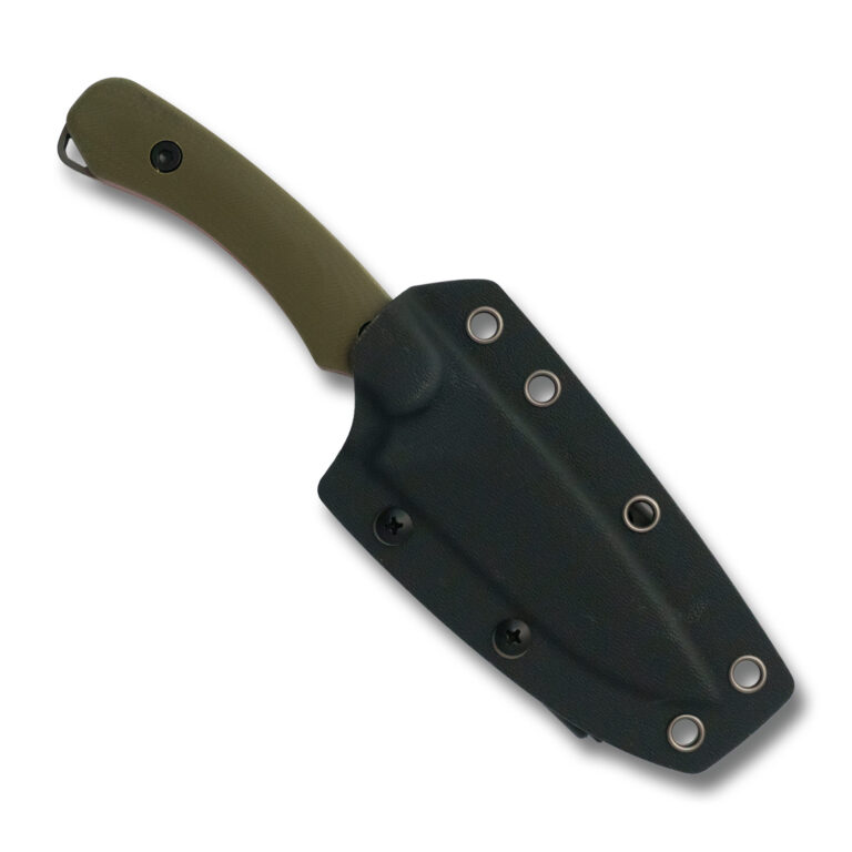The RoseCraft F1 Fixed Blade features a 4″ 1095 carbon steel drop point blade with a PVD coating. It’s 3.7mm thick with full tang construction. A thumb ramp and three sections of jimping along the spine of the blade offer a sure grip in multiple positions. The removable 4.2″ handle covers are OD green G10 with a red G10 liner and a lanyard hole. It’s 8.25″ overall and comes with a universal mount Kydex sheath. At just 5.7oz, the RoseCraft F1 is great for EDC or your next outdoor adventure. Designed by Chase Snyder. Made in China