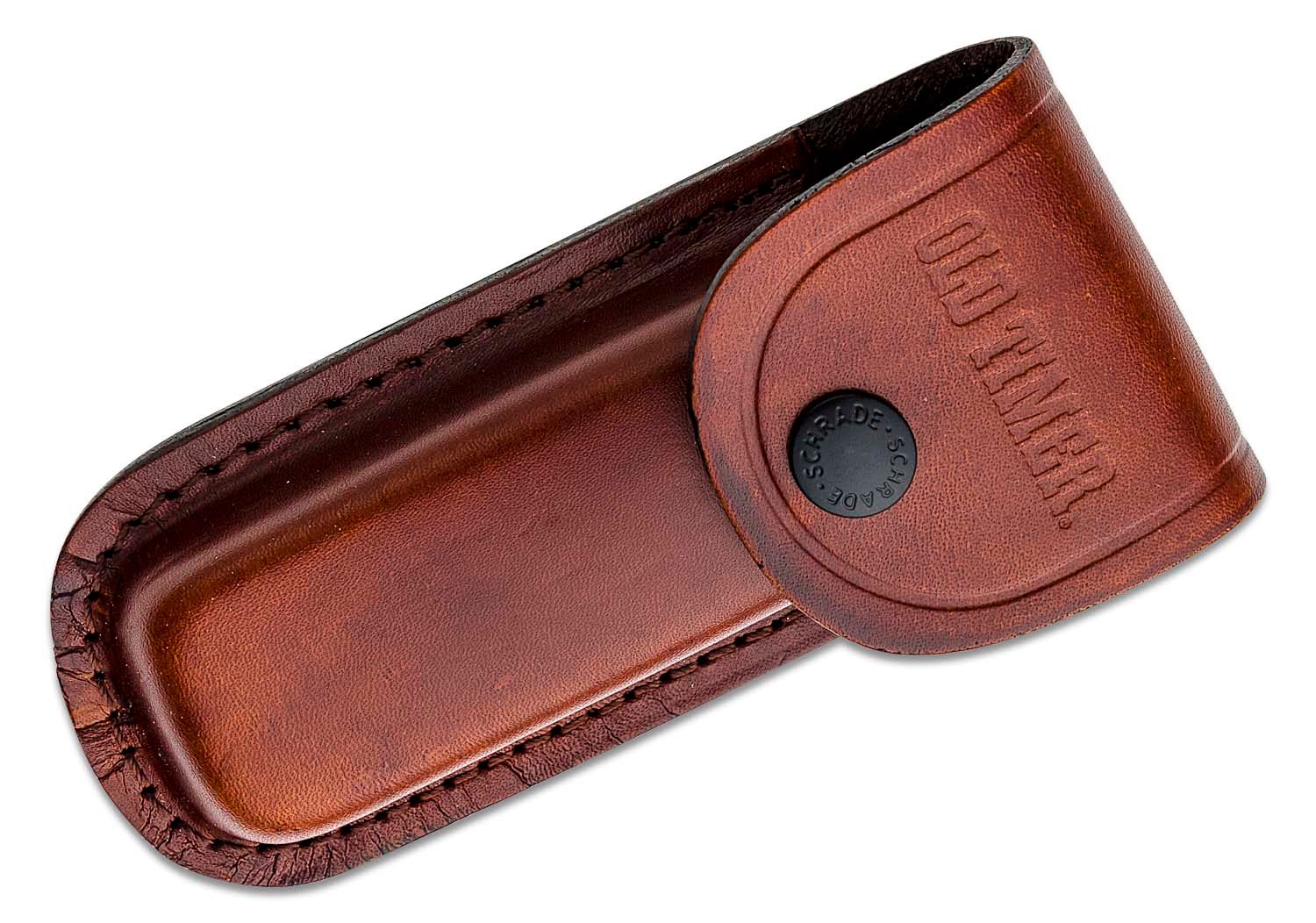 The Schrade Old Timer Cave Bear Lockback features a 3.75″ satin finished 7Cr17MoV high carbon stainless steel clip point blade with a nail nick and a sturdy back lock. The handles are brown sawcut composition with brass pins, liners, bolsters, and Old Timer shield. It’s 5″ closed.