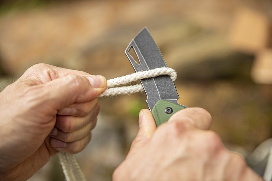 • 3.26″ Cleaver Blade features a Blackwash stainless steel