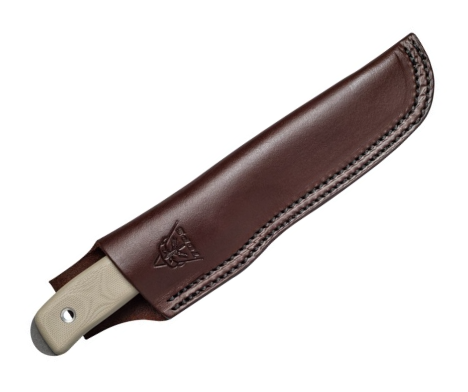 There are not a whole lot of things that Desert Dave can’t do so it is no surprise that he has added Knife Designer to the mix. Dave is a Primitive Skills Expert and is considered one of the country’s foremost educators in Stone Age living skills. The Sonoran is a working example of what his ideal blade would be. It has the looks of a traditional Puukko but with more of a trailing point than a straight back and a little more contour in the handle.