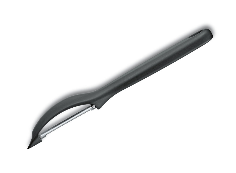 The Victorinox Forschner Serrated Swivel Peeler is remarkably sharp and so light that hand strain is never an issue. Features an extremely sharp, serrated blade. Not only for potatoes, you can use this tool to peel a ripe tomato, juicy peach, slippery bell pepper, or even a tough-skinned mango. The handle provides a comfortable, firm grip.