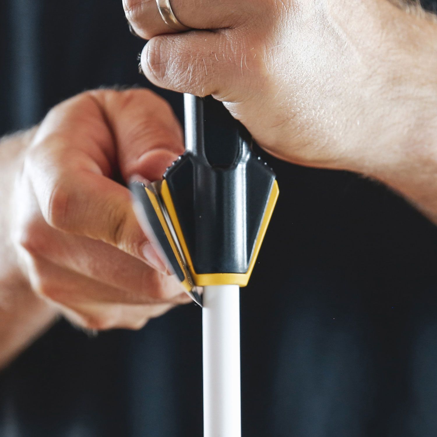 A ceramic kitchen knife honing rod with built-in angle guides for consistent results, every time. Measures 15.5″ overall.