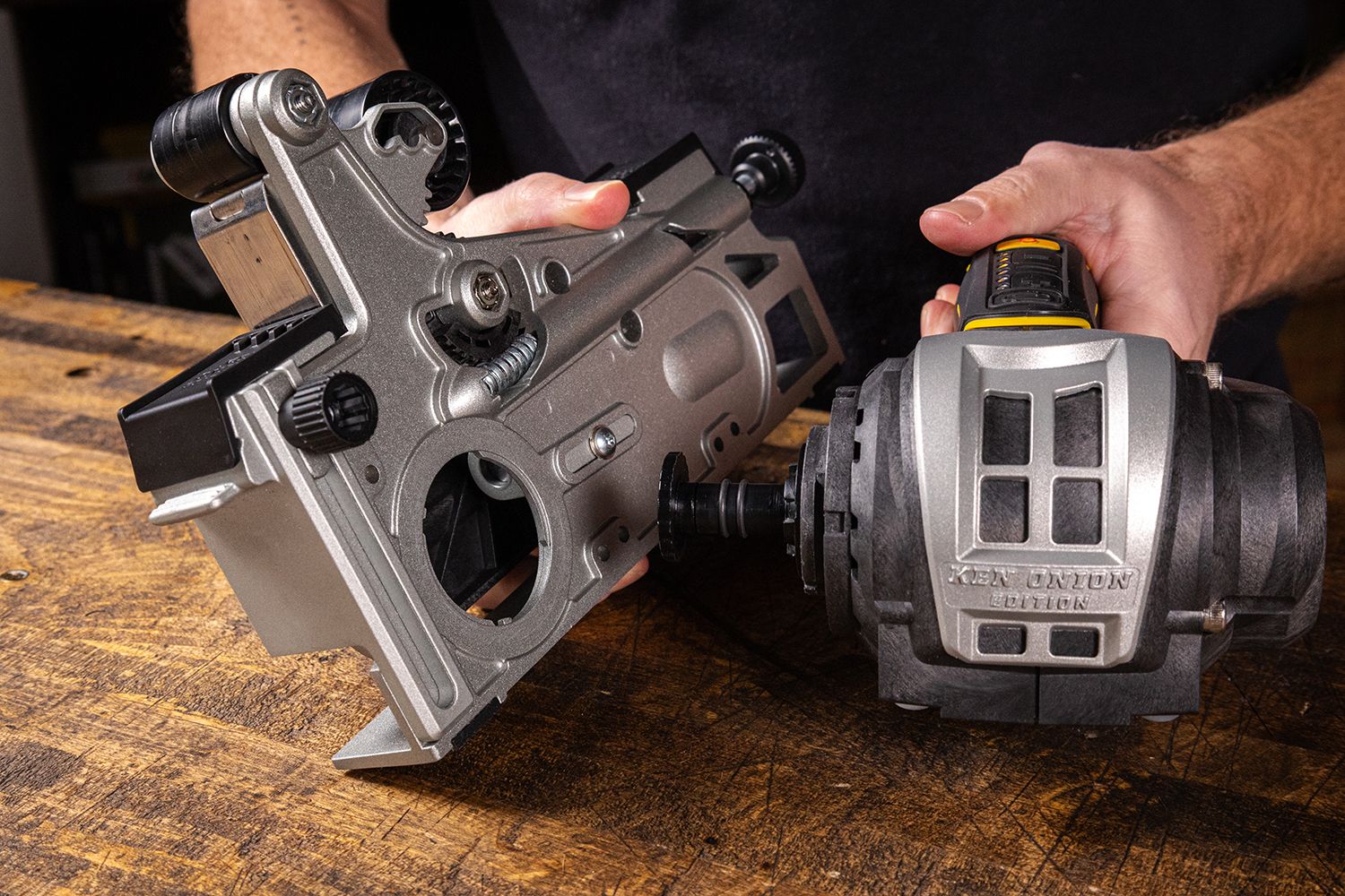 Elevate your sharpening experience with the Blade Grinding Attachment for the Ken Onion Edition Knife & Tool Sharpener Mk.2 (sharpener not included). This attachment offers greater control with horizontal benchtop sharpening, featuring larger 1″ x 18″ belts, adjustable edge angles from 10° to 35°, and three convex edge profile settings. Engineered for professional results, it includes two reference plates for easy angle maintenance and a touchless sharpening experience. Designed with Ken Onion, it ensures precision and ease for your most prized knives.