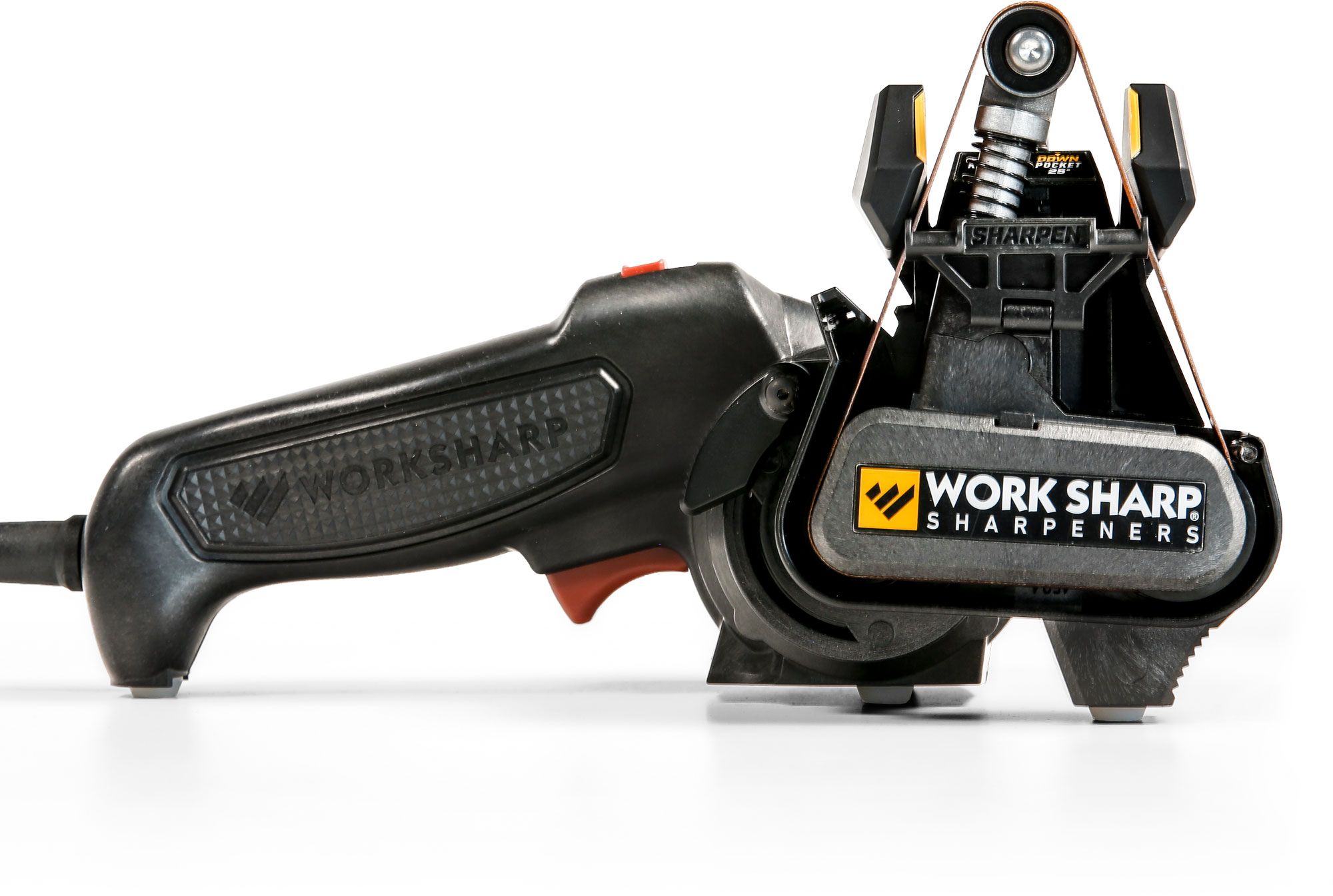 The Work Sharp Knife & Tool Sharpener Mk.2 brings a number of improved features to make sharpening even faster, easier, and more repeatable. Sharpens every knife you own using Flexible Abrasive Belts and a redesigned Sharpening Guide. It sharpens outdoor, pocket, and kitchen knives, even serrated knives, scissors, and many other common edge tools. The redesigned Sharpening Guide increases precision and repeatability to get the proper edge angle every time and provides a scratch-resistant leather lining. Quickly change from 25° outdoor knives to 20° Kitchen knives in one guide. The Edge Guide supports the knife all the way to the tip and makes sharpening easier. Professionals use flexible belts to put a razor-sharp edge on their blades, now you can have the same technology in your home or shop. This tool is designed, calibrated and quality checked in Ashland, Oregon, and comes with a 3-year warranty. Includes a detailed Quick Start Guide and User’s Guide.